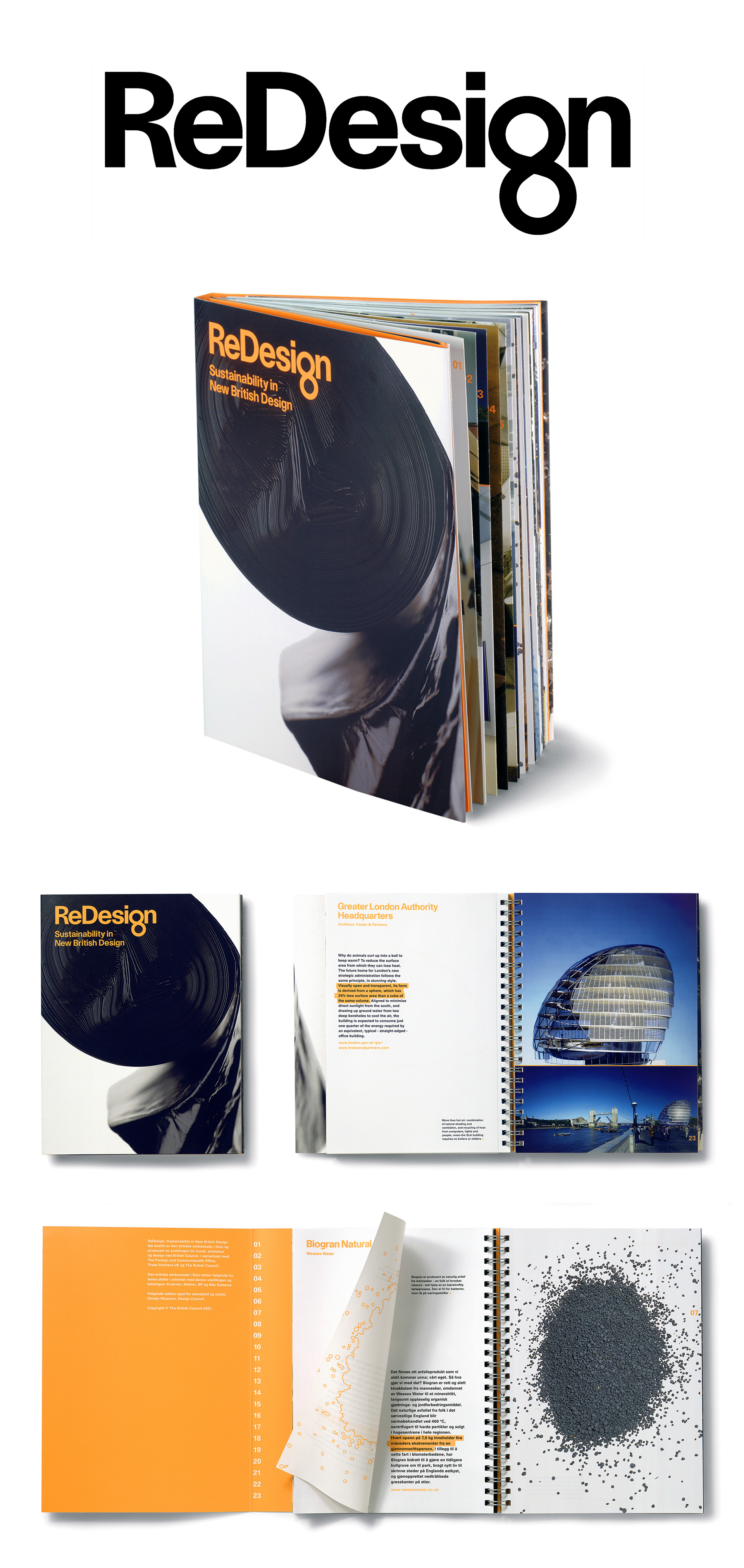 A logo, dual-language catalogue and exhibition design for an international show on British sustainable design.