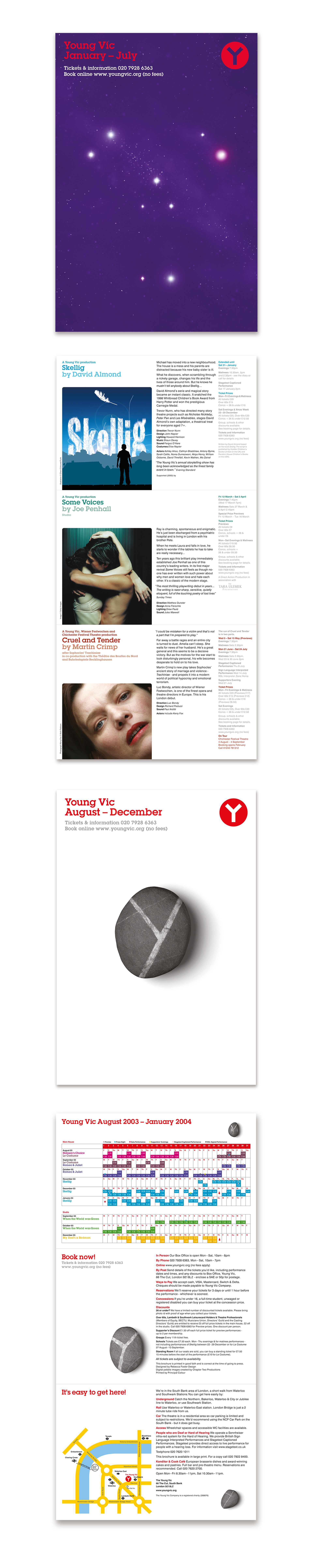 Design for the bi-annual season brochure/diary of forth coming productions for the Young Vic studio.